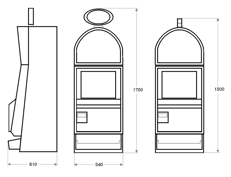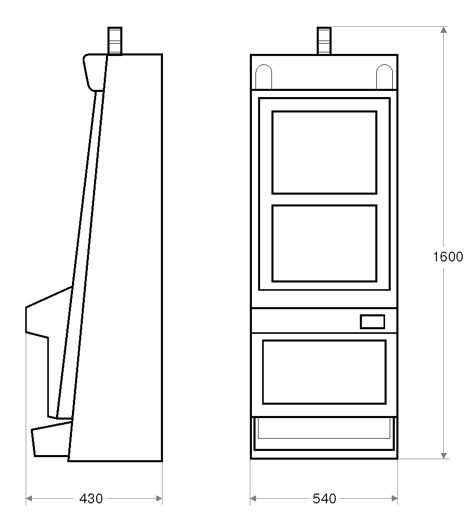 Possibility to install topper for attracting more attention (option). All machines are completed with reliable and time-proved bill validators. Comfortable and ergonomic location of the gaming process control elements. Small depth of the machine (410mm) makes it attractive for gaming halls with limited space.